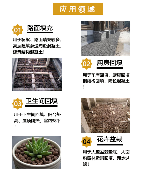 南昌建筑回填陶??梢詮V泛應用于管道保溫、爐體保溫隔熱等其他建筑材料,也可以廣泛運用在農業或園林中無土栽培材料及濾水材料;陶?;炷粮菑V泛用于工業與民用建筑的現澆混凝土工程中;